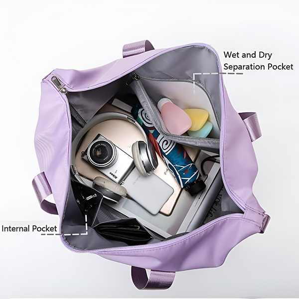 Ez a táska nedves és száraz elválasztóval rendelkezik a koszos vagy vizes ruhák és törölközők kényelmes tárolására.
