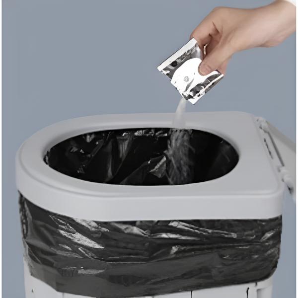 Egyszerűen távolítsa el a zsákot használat után, és időnként vízzel is kimoshatja a WC-t.