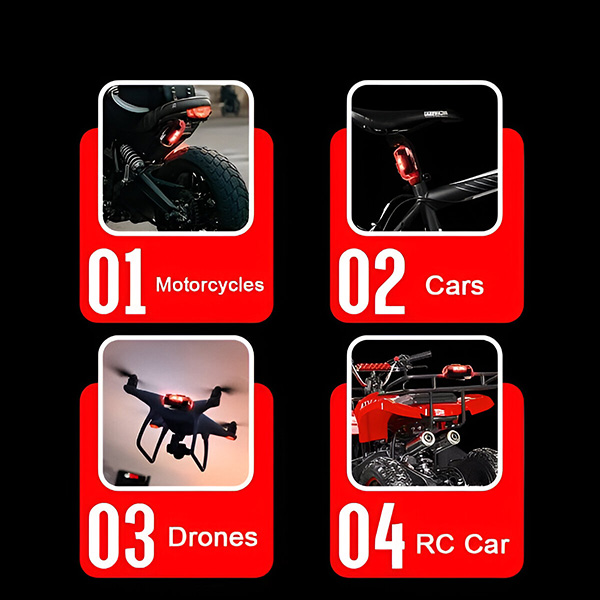 🚨 Több mint 100 méterről látható – 7 RGB szín és 3 világítási mód (gyors stroboszkóp, lassú stroboszkóp, folyamatos), melyek egyetlen gombnyomással válthatók.